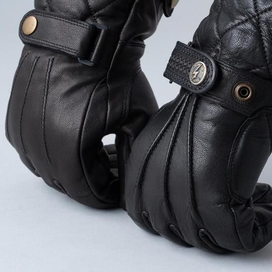 手の甲の3本の飾りステッチにピンタック加工を施すことによって、見た目の立体感とレザーの剛性が増します(写真右)。
